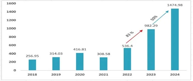 (~$982.29 million) in FY23, and finally reaching ₹12,375.11 crore (~$1,474.98